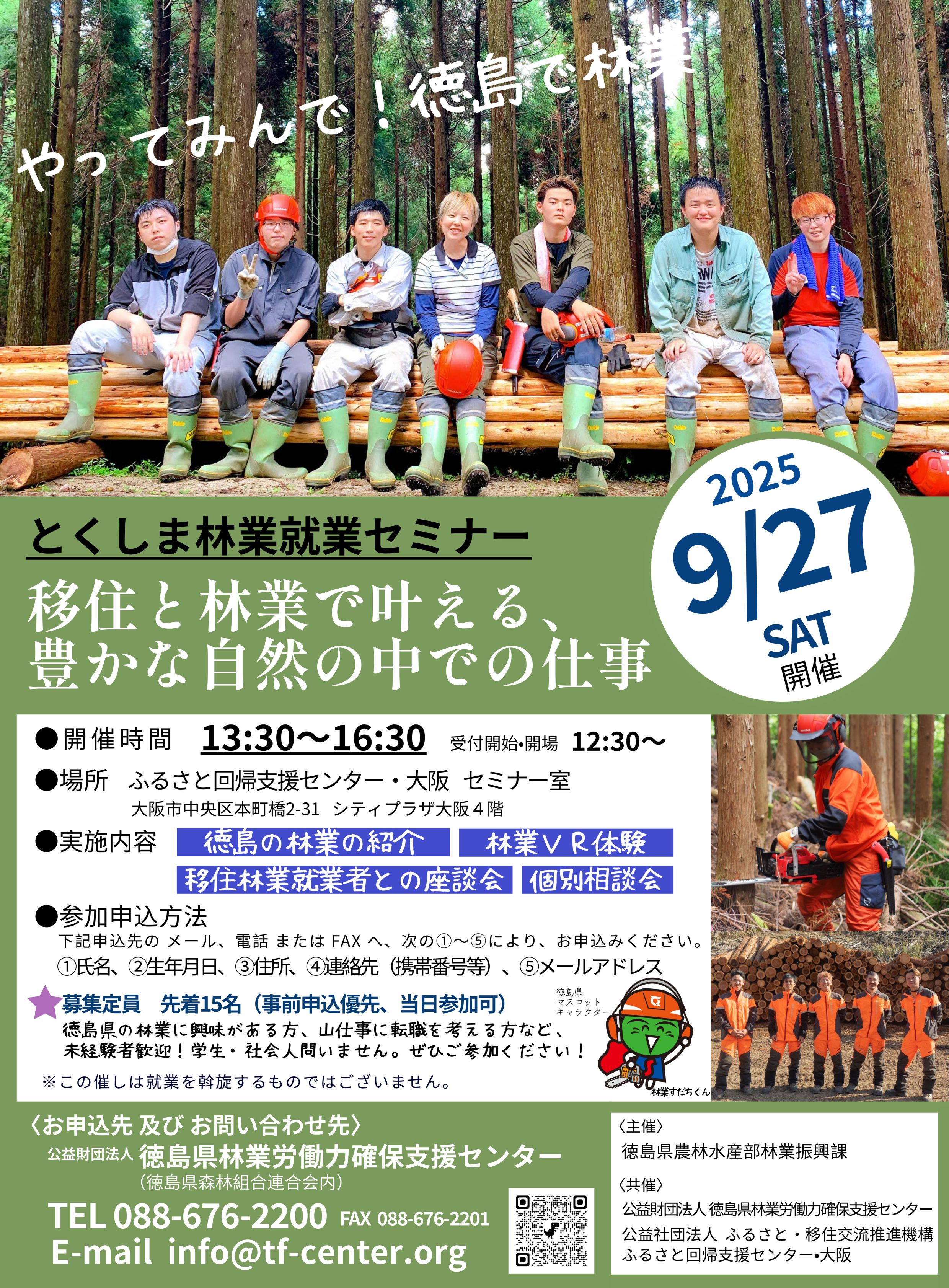 申 込 先:公益財団法人 徳島県林業労働力確保支援センター